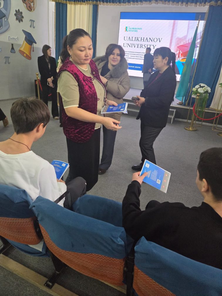 Бүгін мектебімізде Ualikhanov University өкілдерінің қатысуымен кәсіби бағдар беру кездесуі өтті. Іс-шара барысында оқушылар университеттің білім беру мүмкіндіктерімен, даярлау бағыттарымен және оқуға түсу шарттарымен танысты.
