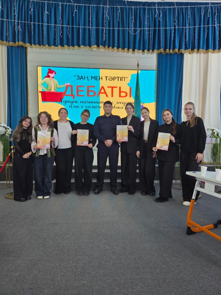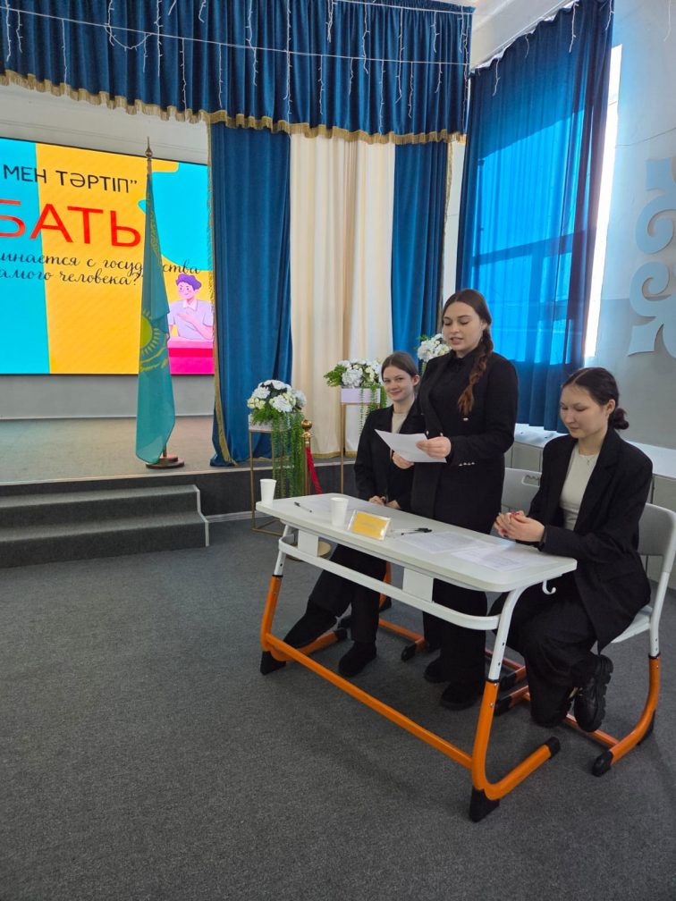Біздің мектебімізде «Заң және тәртіп» құндылығына арналған дебаттар өтті. Іс-шара «Тәртіп мемлекеттен бастала ма, әлде әр адамның өзінен бастала ма?» тақырыбында ашық пікірталас форматында ұйымдастырылды.