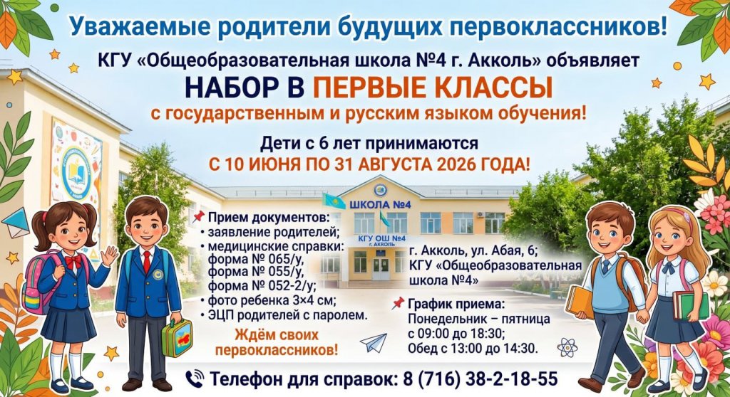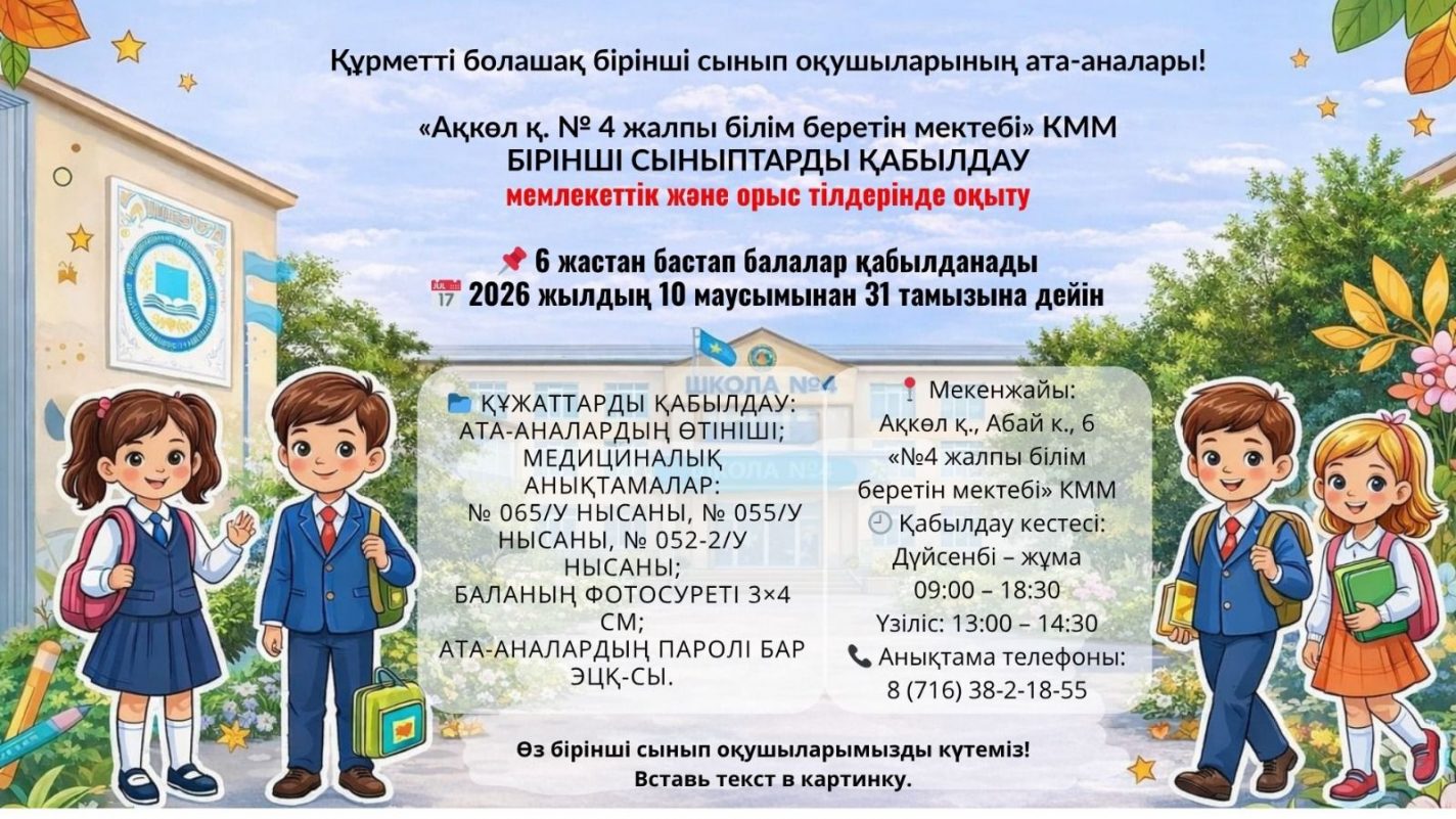 Назар аударыңыздар! 1-сыныпқа қабылдау басталды